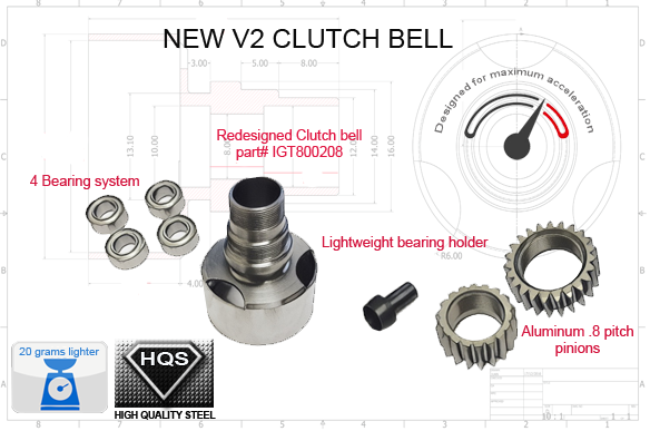 Available as an optional in our previous car, the IGT8 Red, the .8 transmission has proven to be a great success, improving not only acceleration but being a bullet proof transmission with very little maintenance which seems to be a common problem for most GT cars. This upgraded transmission also remains more consistent during the long runs and is 50 grams lighter than the previous one.