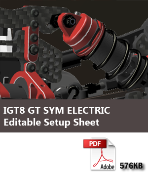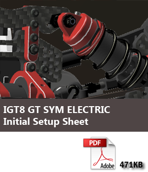 The completely redesigned suspension hangers are also symmetric so one hanger fits the whole car. They feature small inserts that allow you to move the arms up and down to change the roll center. They are independently bolted to the chassis by three screws which is beneficial because it enables more control of the chassis flex. In a traditional C-Hub car, you need to swap the insert in the rear to change the toe, but not in the new IGT8. The design team was able to apply and evolve an already-proven concept to easily adjust it. In fact, by turning a set screw from the side of the car, you can modify your toe on the fly.