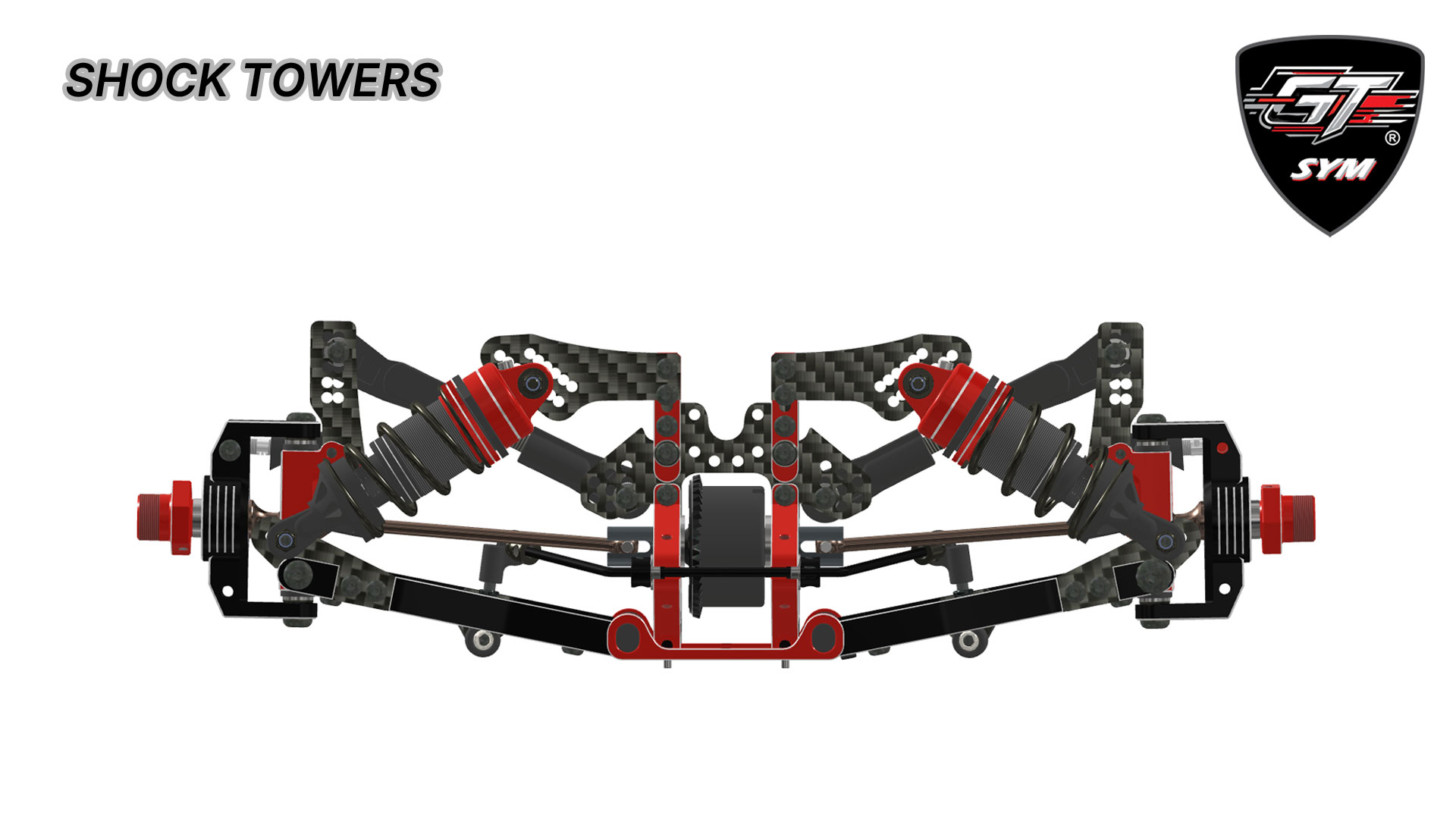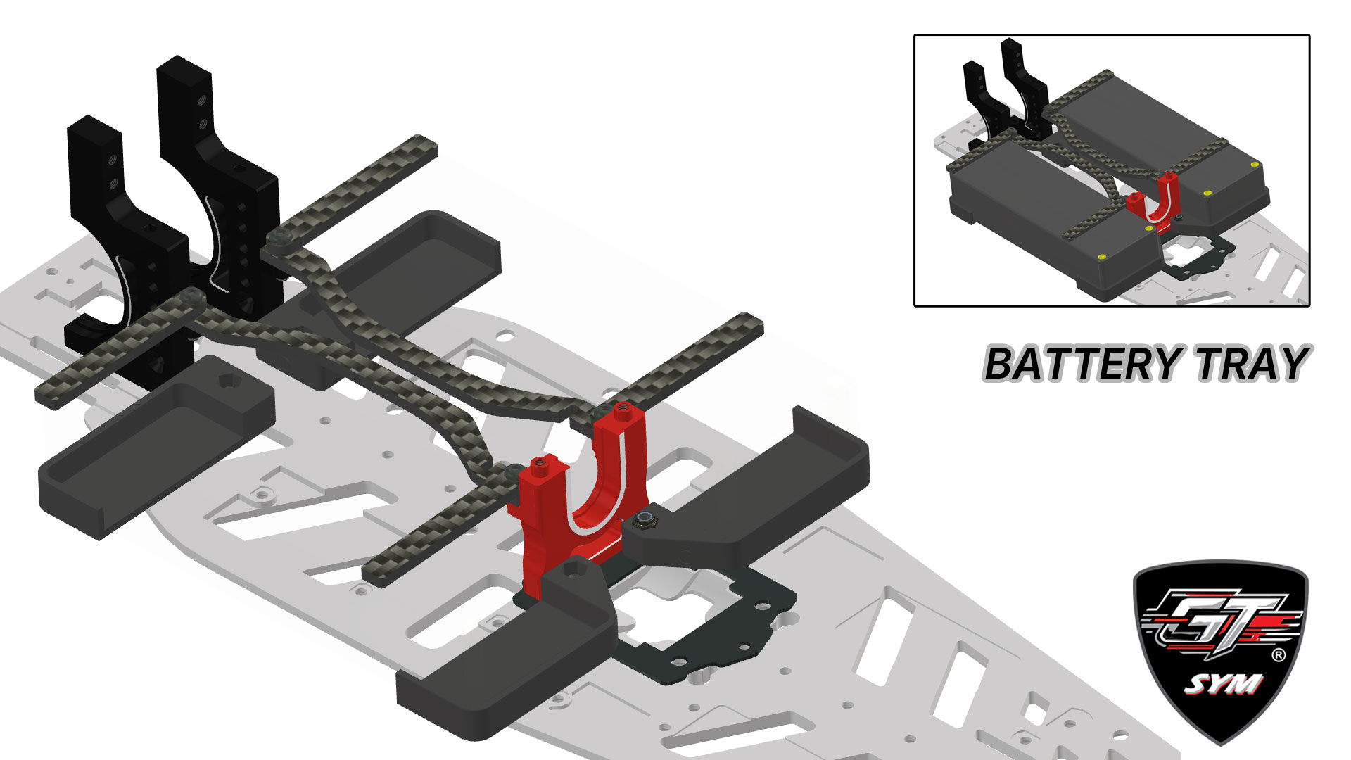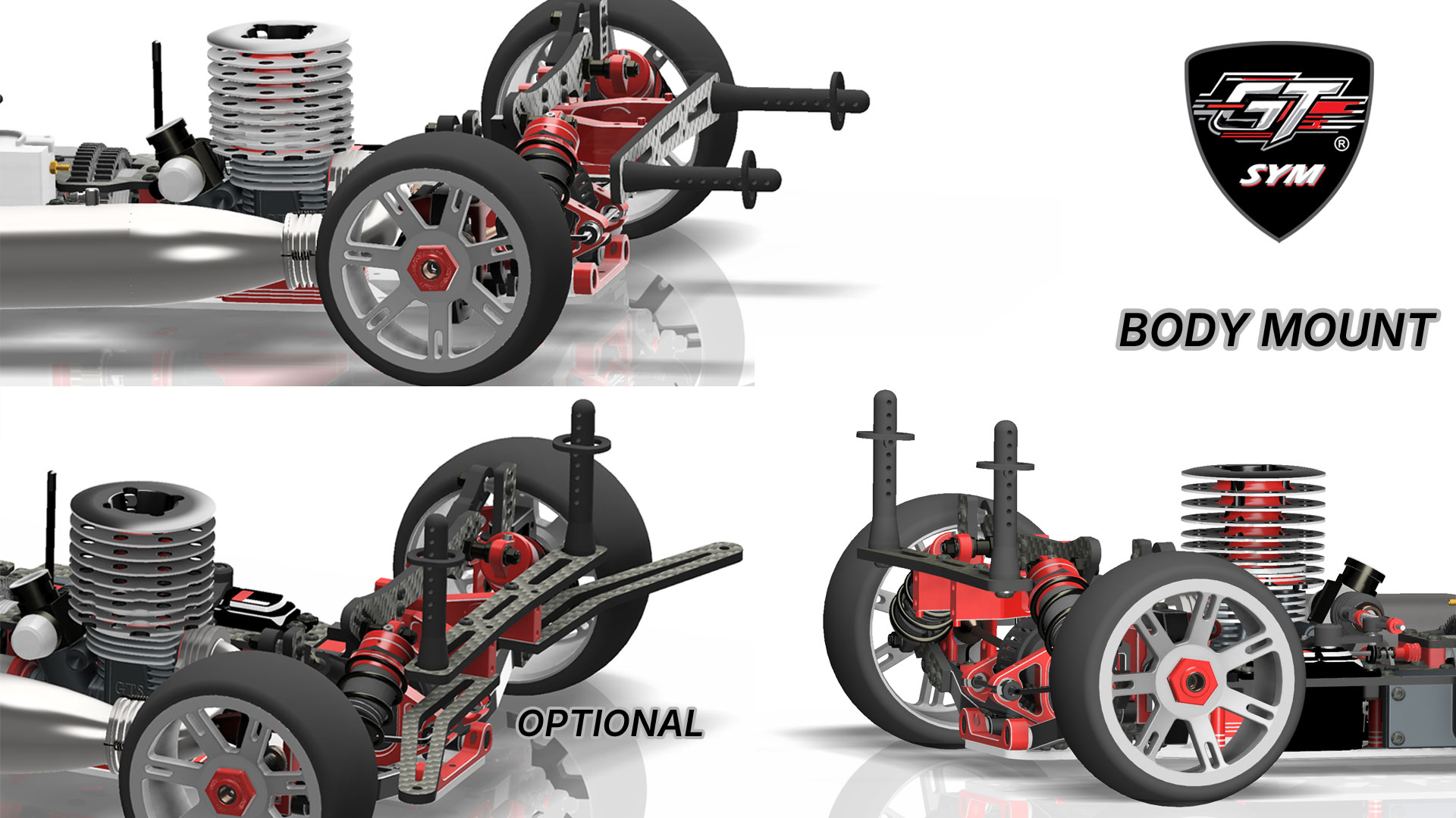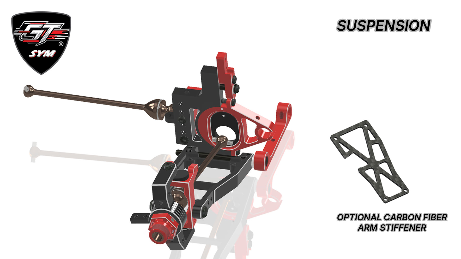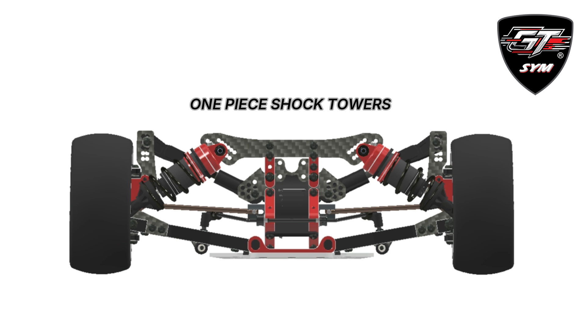 Inspired by the most successful modern Touring Car applications, we have integrated proven ideas into our design. The SYM philosophy is applied to the fullest in the suspension components where the arm, arm block, and wheel hub can be used in any of the corners, making our car the first GT to adopt this clever and efficient design. The aluminum strong and sleek arm design guarantees optimum performance under any track condition. For extremely high grip situations, you can install the optional carbon fiber inserts for added stiffness. Last but not least, the wheelbase can be independently adjusted in the front and the rear by up to 2 mm per axle.