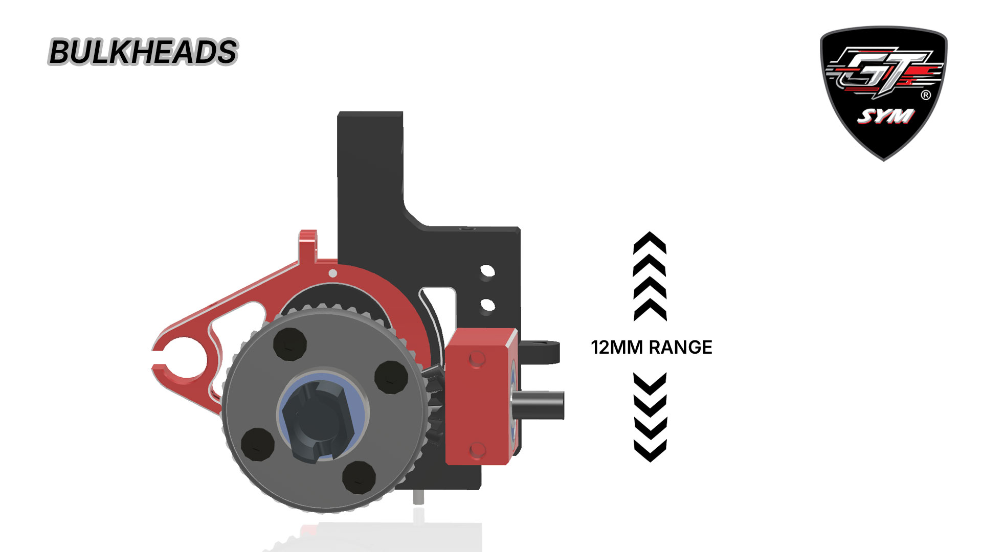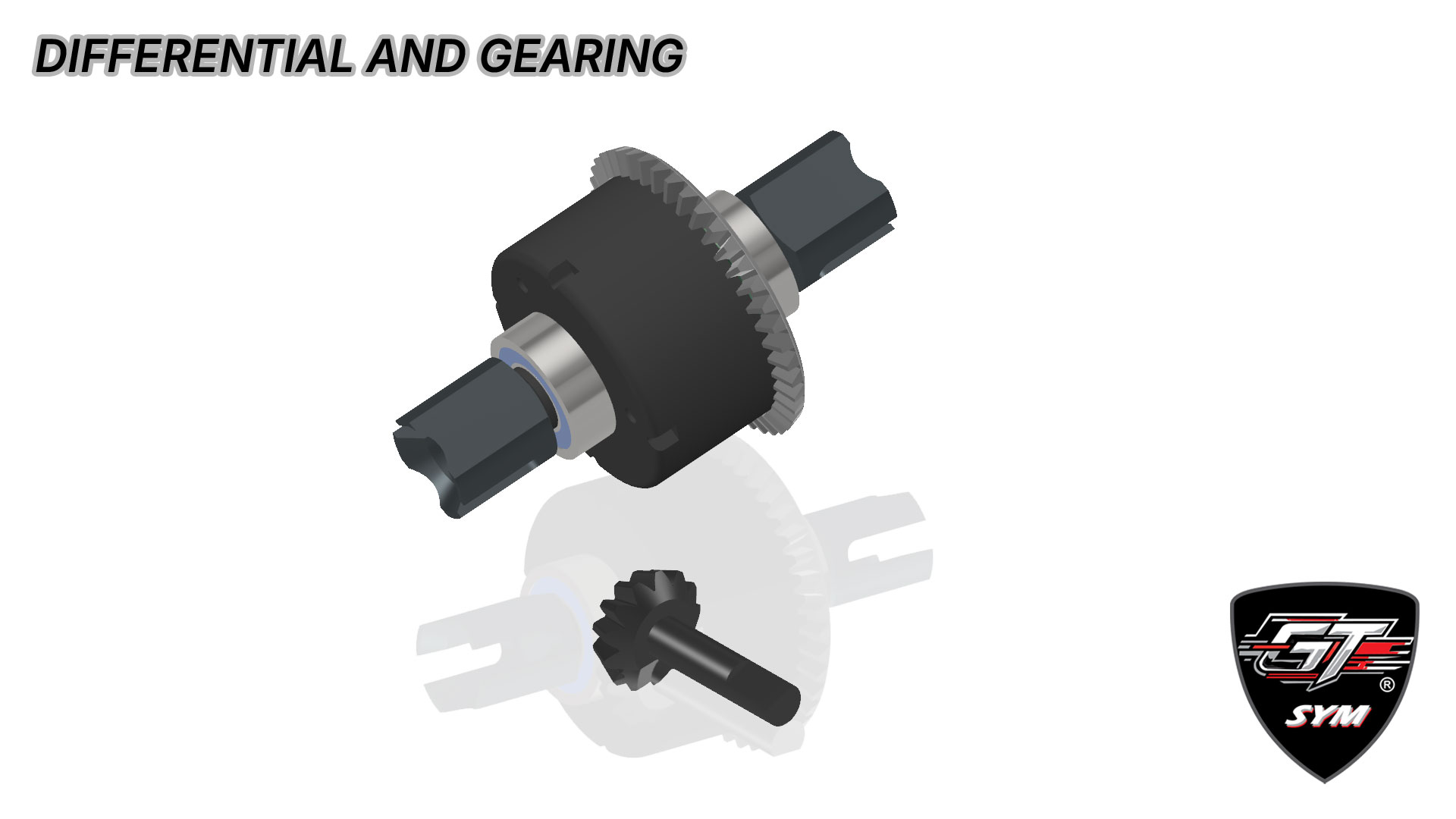 The Sym is equipped with a 46-13 internal drive ratio, a gearing combination that works well with today's engine powerband. The diffs are mounted on eccentrics made out of Delrin. The combination of both pieces enables 5 different height positions, with a range of movement of 12mm.