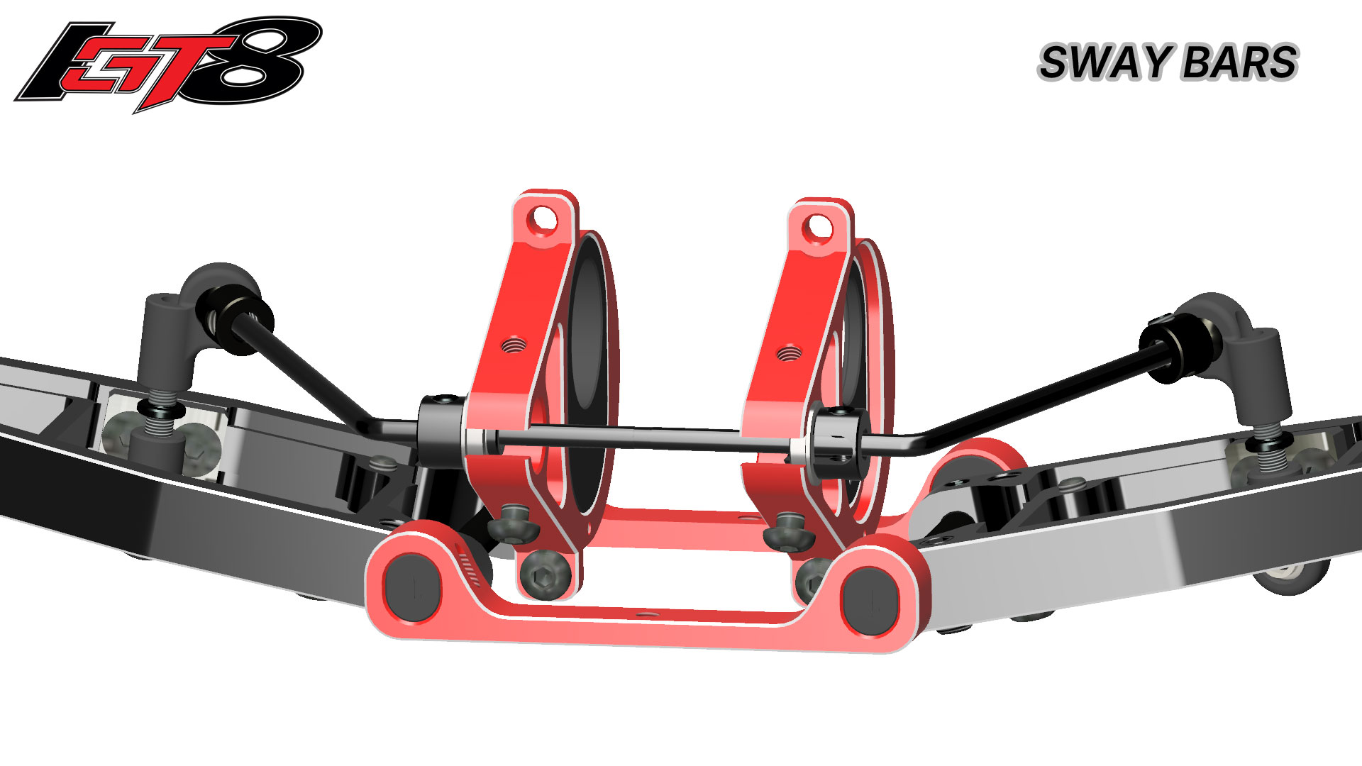 The sway bars are dedicated for the front and rear and laser marked. They ride on ball bearings for maximum precision.